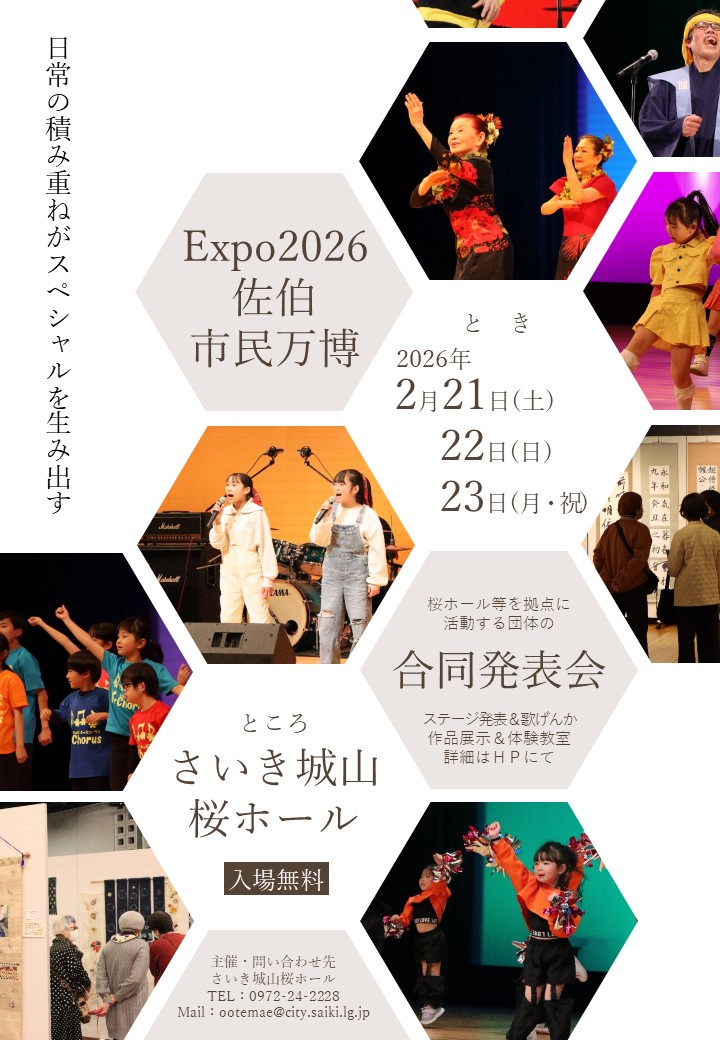 - さいき城山桜ホール運営委員会事務局 電話:0972-24-2228