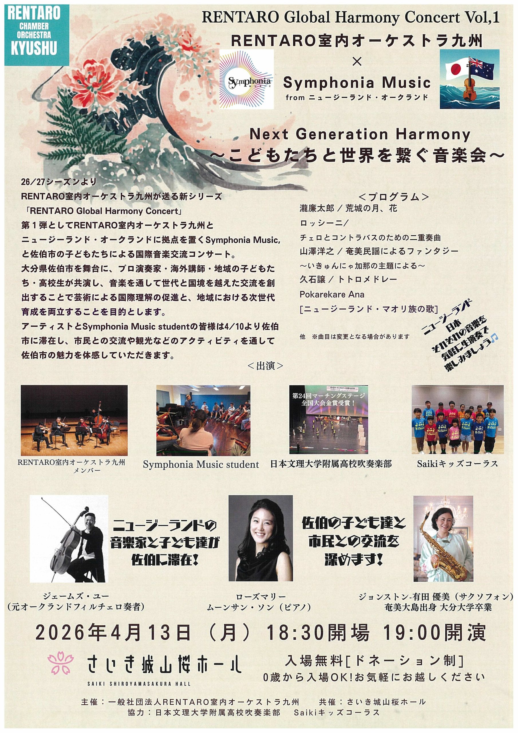 RENTARO室内オーケストラ九州×Symphonia Music from ニュージーランド・オークランド Next Generation Harmony ~こどもたちと世界を繋ぐ音楽会~